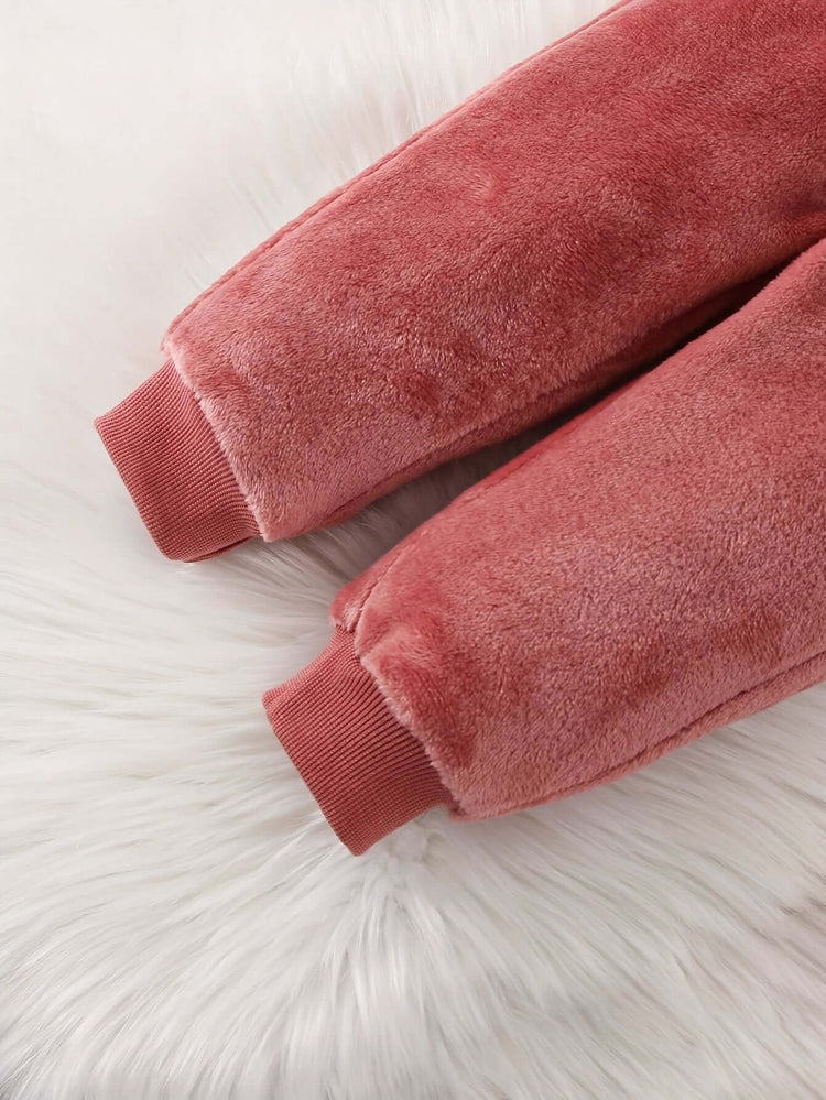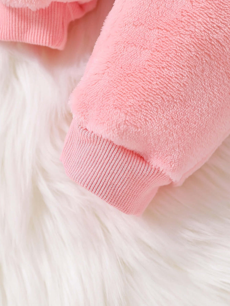 2-piece Baby's LOVE Embroidery Warm Fuzzy Hoodie + Cute Bear Bag + Casual Pants, Toddler & Infant Girl's Clothing Set For Fall Winter