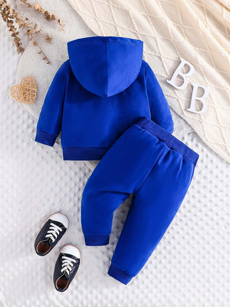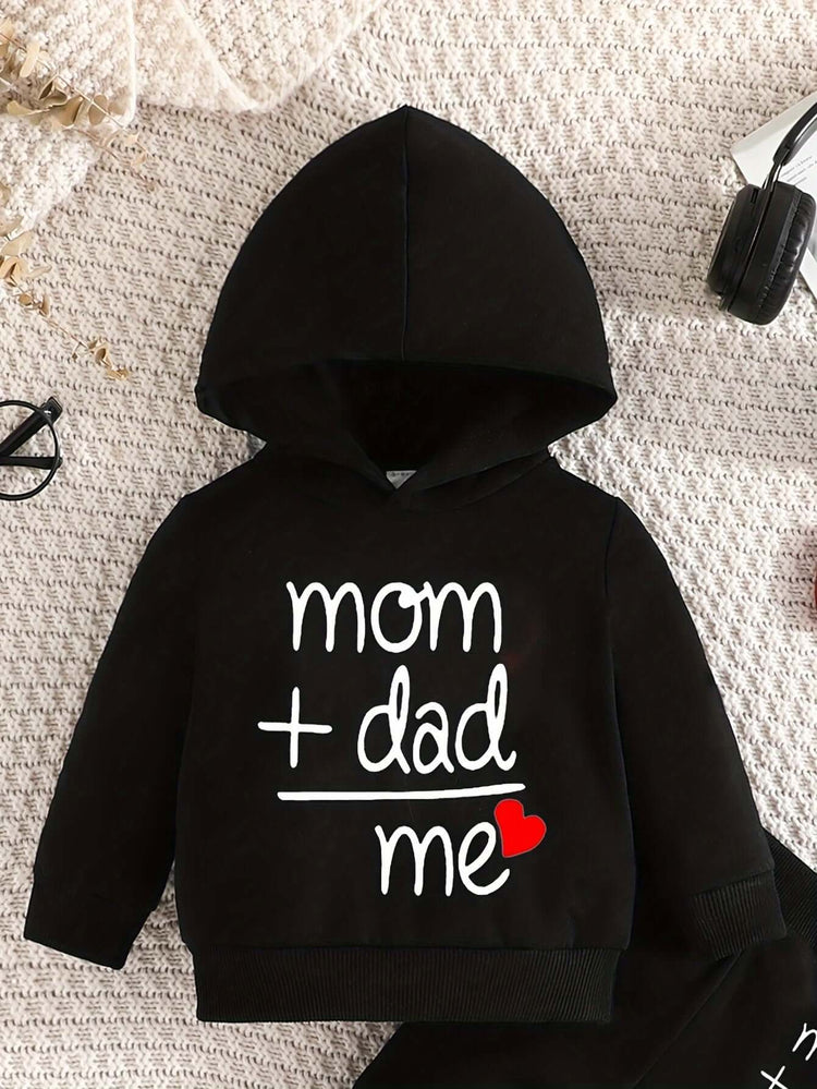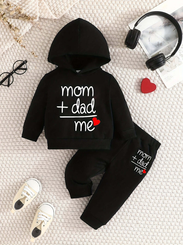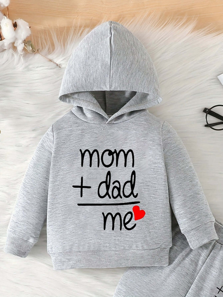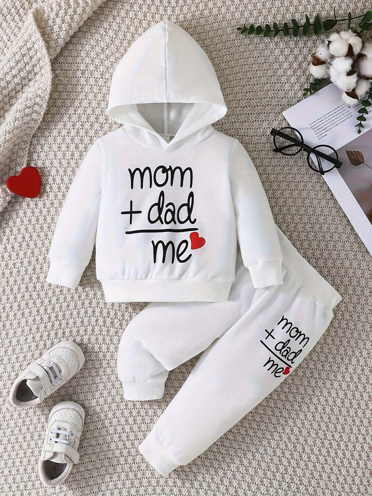 Adorable 'Love Mom and Dad' Heart Print Hoodie & Pants Set for Baby Boys - Cozy Polyester Blend, Machine Washable - Perfect for Spring & Fall