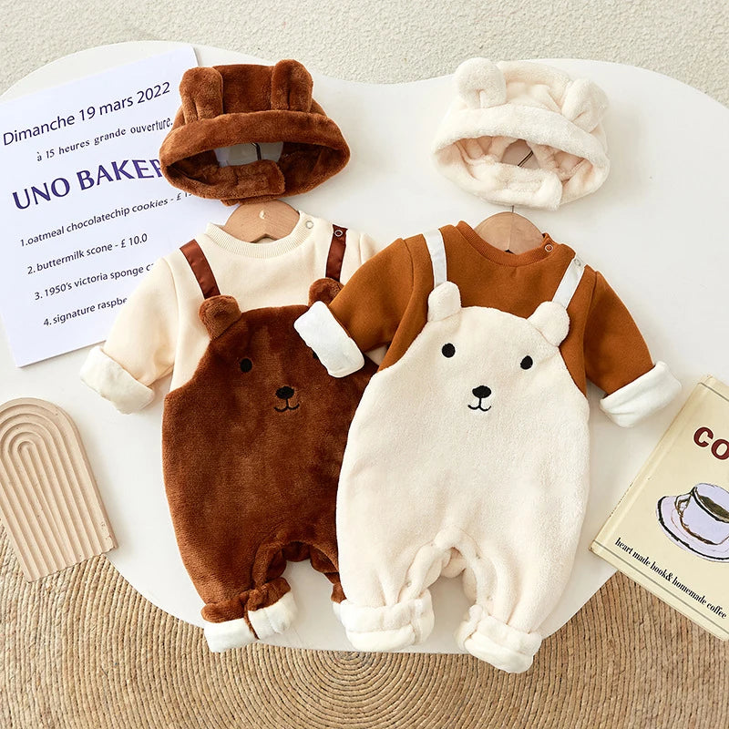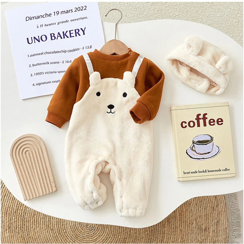 Baby Bear Rompers New Winter Toddler Loose Fleece Cute Jumpsuit Infant Outfit with Hat 2 PCS