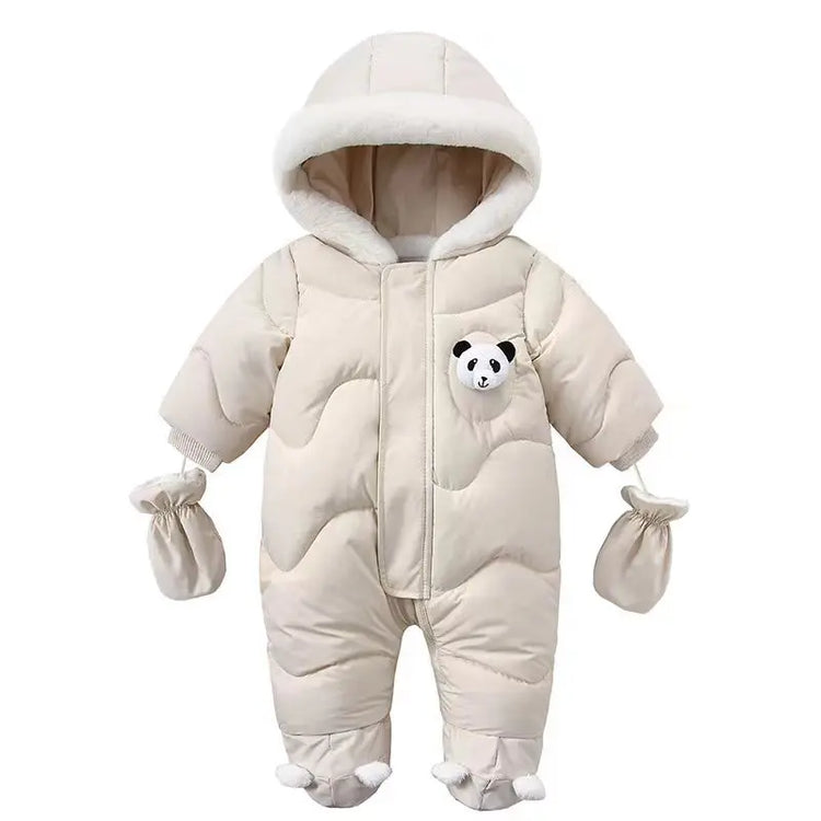 Korean Style Baby Boy Winter Jumpsuit Cartoon Bear Plus Velvet Infant Boy Coat Toddler Girl Snowsuit Baby Winter Romper Outfit