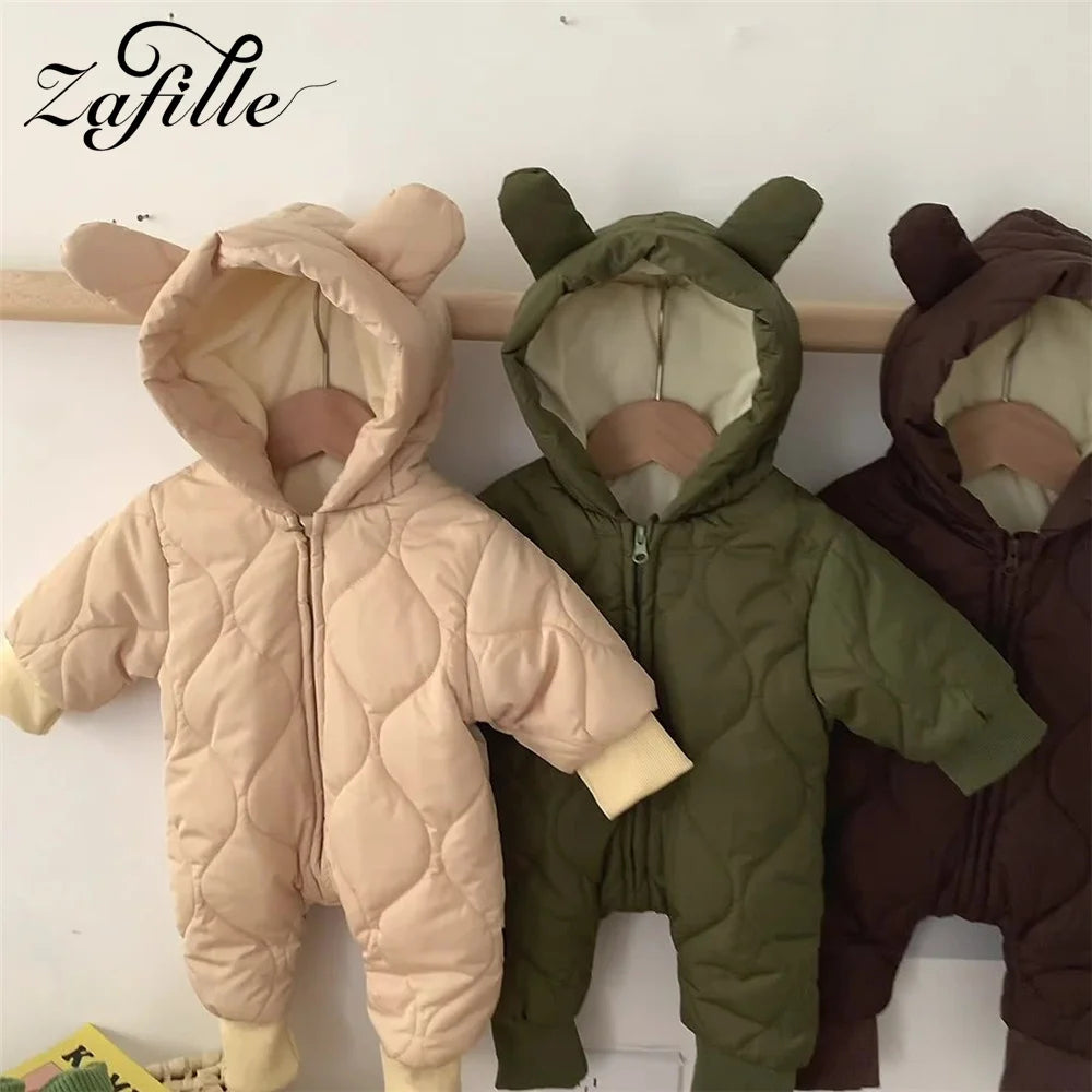 ZAFILLE Winter Thickened Newborn Playsuits Plush Overalls For Children's Clothing Hooded Outwear Solid Warm Toddler Baby Clothes